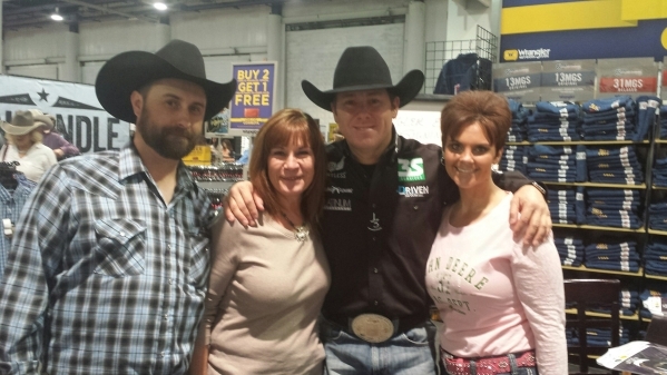 Saturday couldn’t have gone much better for a trio from Wellsville, Utah: JayDee Maughan and his wife Courtnee, and JayDee’s mother Jan Hall. Hall stumbled onto an autograph line for Trevor Brazile, inarguably the most successful cowboy ever to walk the planet, and she immediately went and wrangled her son and daughter-in-law. After a short wait, they were with Brazile “having a visit,” as is the lingo in cowboy culture.