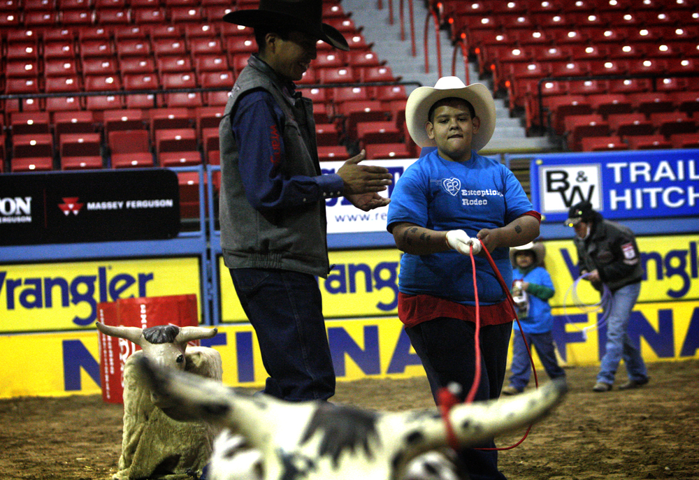 The annual Exceptional Rodeo was Dec. 5, 2011, at the Thomas & Mack Center. The event is for children with disabilities, who are given a chance to play and interact with National Finals Rodeo contestants and participate in rodeo games. It's held every year during NFR.