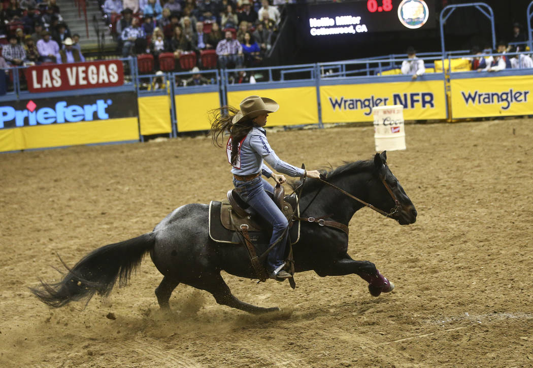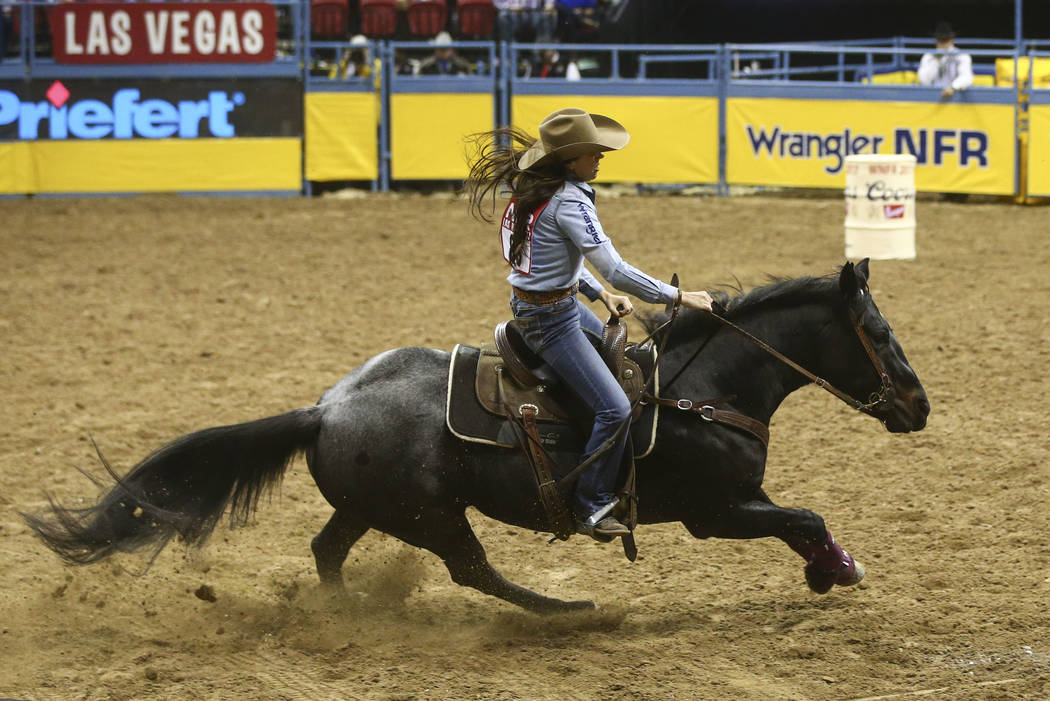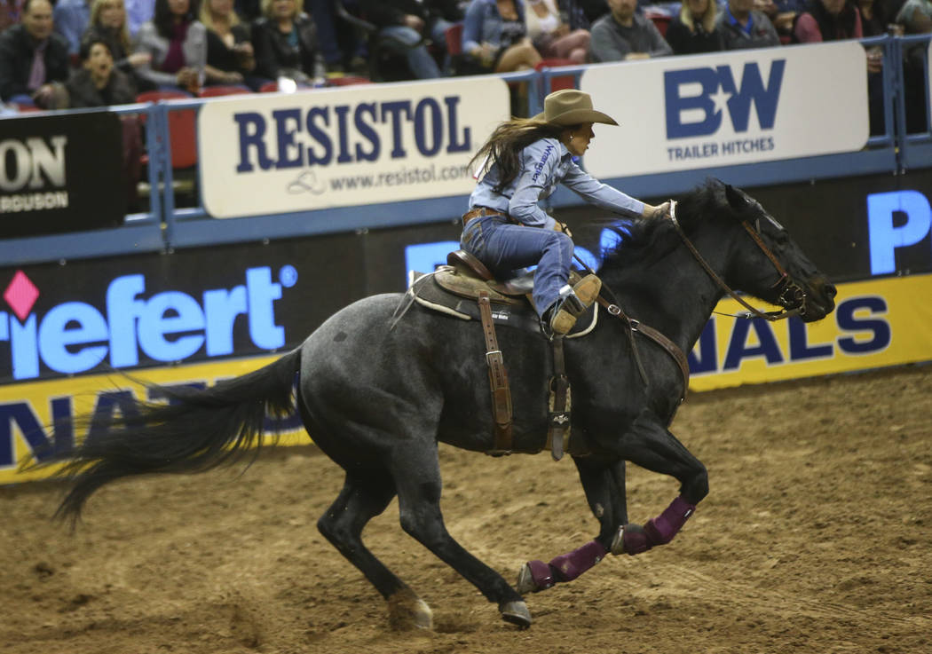 Thursday, the barrel racer, who attended UNLV for two years, was back on familiar turf at the Thomas & Mack Center competing in the NFR once again.