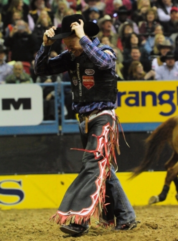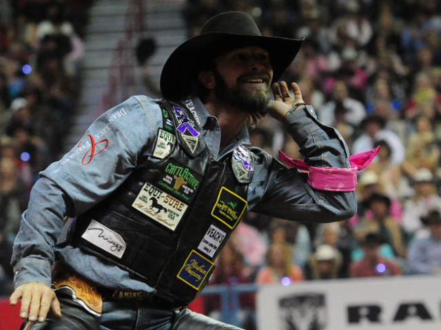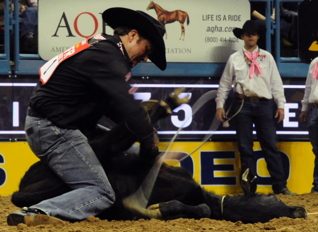 The Texan placed second in the fifth round of the Nationals Finals Rodeo on Monday night at the Thomas & Mack Center to maintain his lead in the world standings and in the NFR average.
