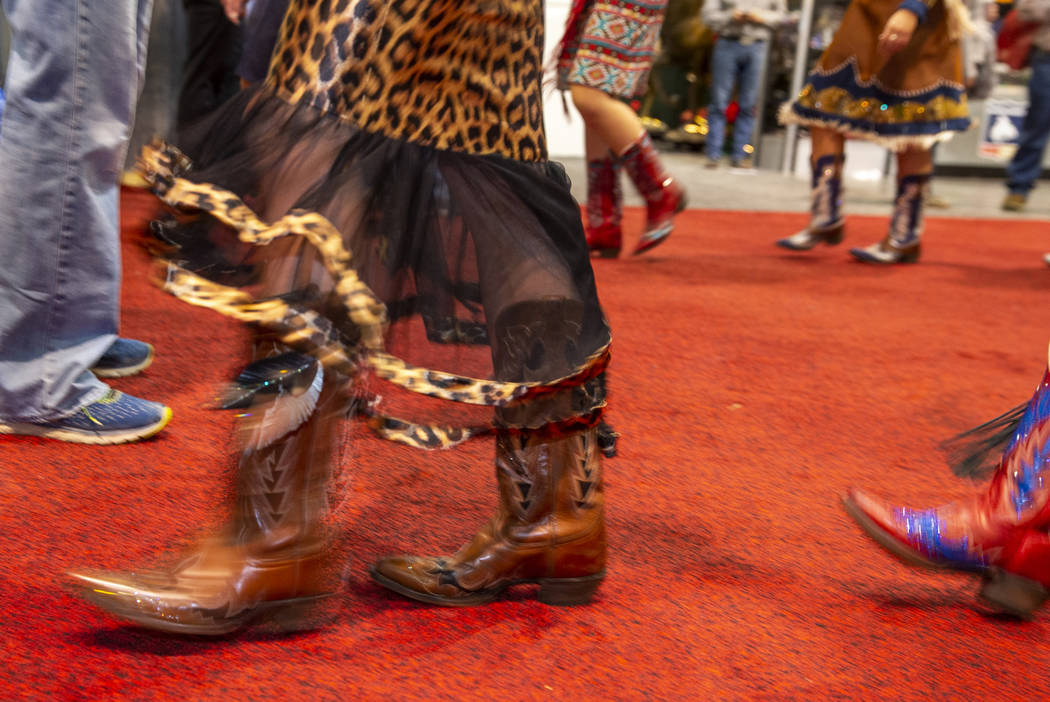 Boots worn and personally designed boots by Kay Marrs of South Dakota move along for the Miss Rodeo America Justin Boot Parade during Cowboy Christmas at the Las Vegas Convention Center on Saturday, Dec. 7, 2019, in Las Vegas. (L.E. Baskow/Las Vegas Review-Journal) @Left_Eye_Images