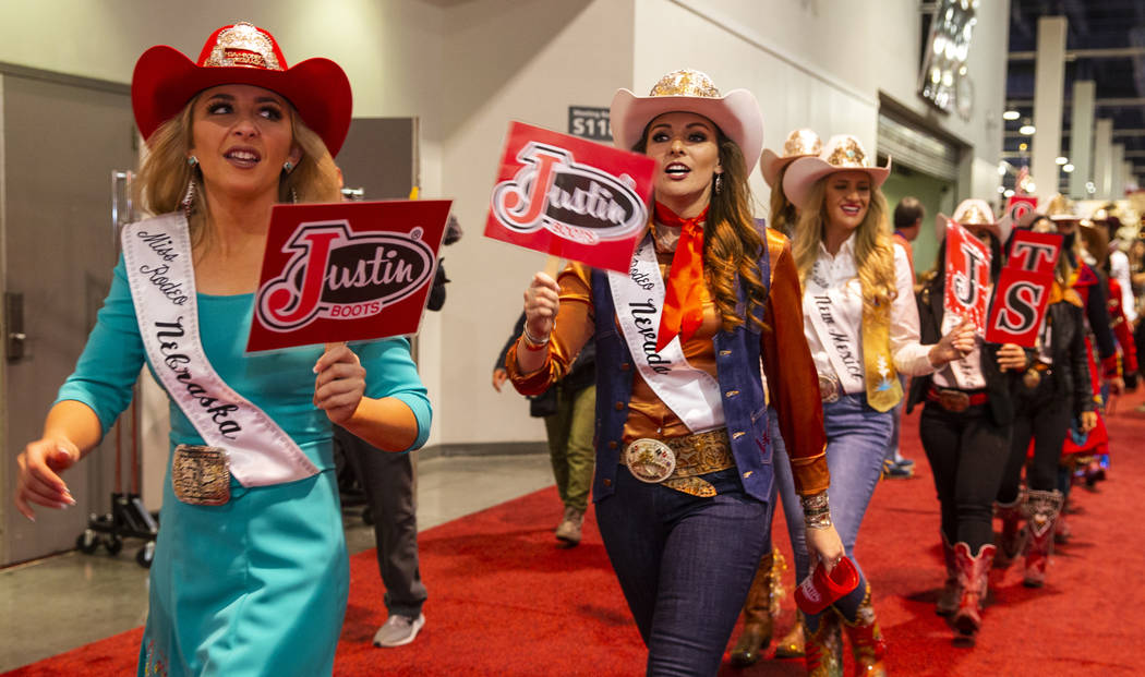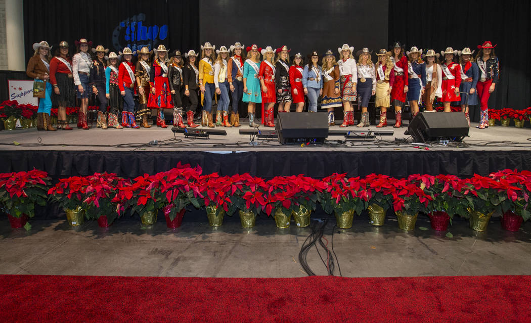 Contestants take the stage following the Miss Rodeo America Justin Boot Parade during Cowboy Christmas at the Las Vegas Convention Center on Saturday, Dec. 7, 2019, in Las Vegas. (L.E. Baskow/Las Vegas Review-Journal) @Left_Eye_Images
