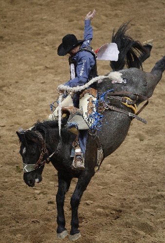 ■ BAREBACK -- Kaycee Feild (Payson, Utah) won for the fourth time in seven rounds when he capitalized on a re-ride option to score 85.5 points on Big Stone Rodeo's Gold Dust.