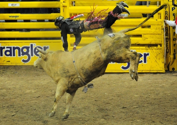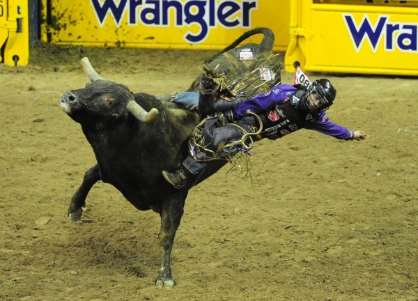 Bull rider Chandler Bownds from Lubbock, Texas, is bucked from his bull during the 8th go-round of the National Finals Rodeo at the Thomas & Mack Center in Las Vegas Thursday, Dec. 10, 2015. Josh Holmberg/Las Vegas Review-Journal