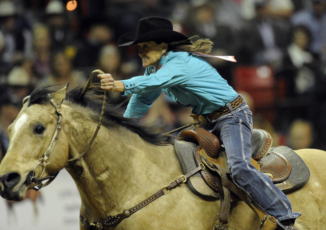 Lisa Lockhart could become the second contestant to earn $100,000 at this year's Wrangler National Finals Rodeo tonight at the Thomas & Mack Center.