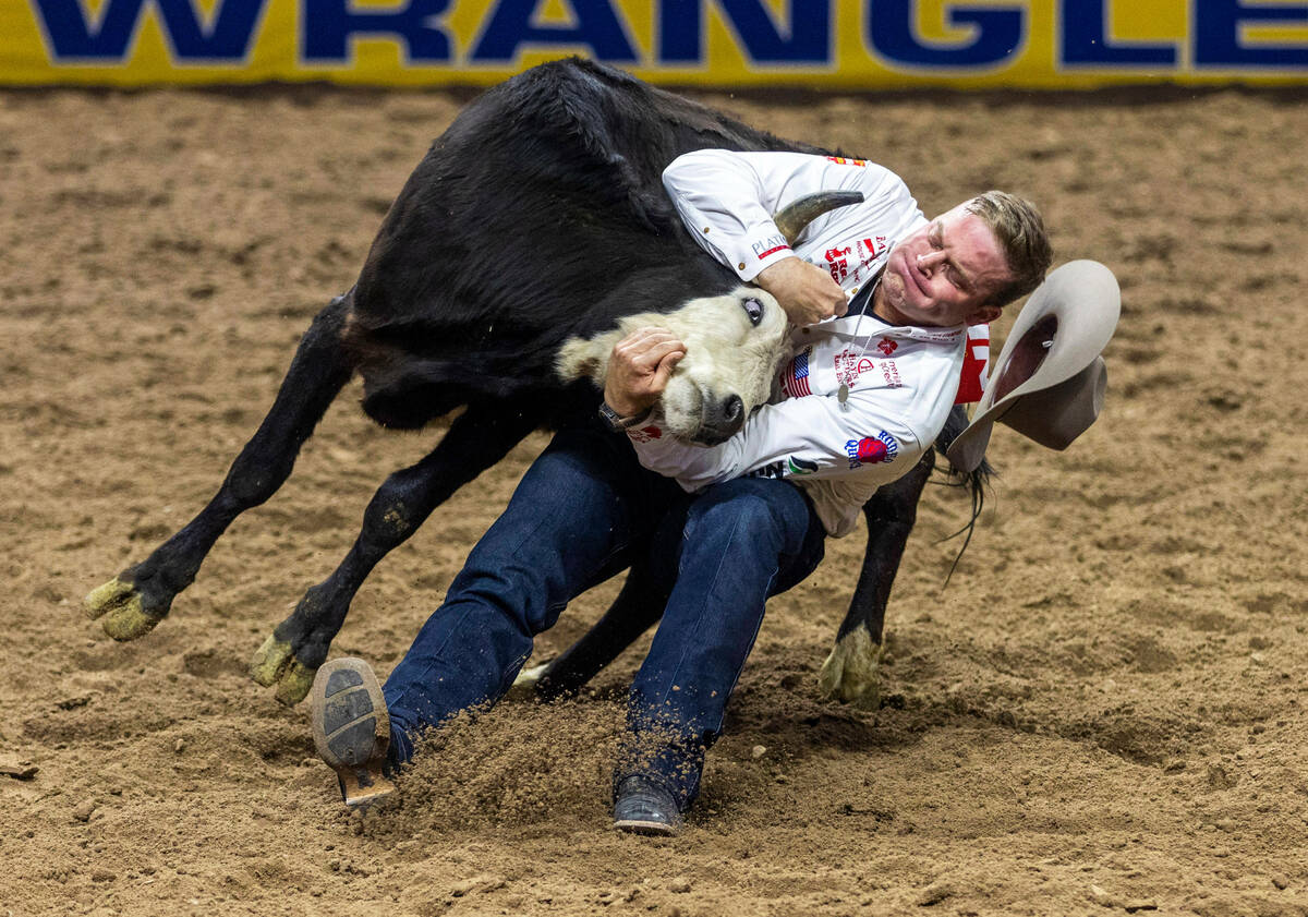 Hayes claimed the 2023 bareback riding world title Saturday night at the Thomas & Mack Center, winning the last go-round with a score of 90, his only go-round victory at NFR.