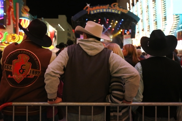 Attendees listen to music during Downtown Hoedown, the kick-off party for National Finals Rodeo, at the Fremont Street Experience in Las Vegas Wednesday, Dec. 2, 2015. Rachel Aston/Las Vegas Review-Journal Follow @rookie__rae