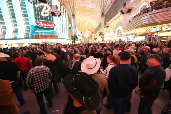 Attendees gather during Downtown Hoedown, the kick-off party for National Finals Rodeo, at the Fremont Street Experience in Las Vegas Wednesday, Dec. 2, 2015. Rachel Aston/Las Vegas Review-Journal Follow @rookie__rae