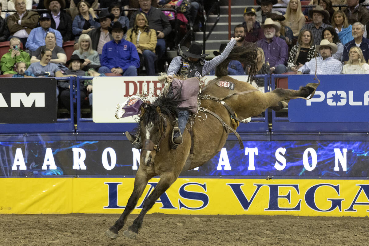 “We have all been buddies since we were little, and we’ve been talking about (competing in Las Vegas) since we were able to walk,” Logan Hay, 25, said after winning his first career NFR round Monday at the Thomas &Mack Center before collecting his second Tuesday with 87.5 points aboard Duane Kesler’s Chucky.
