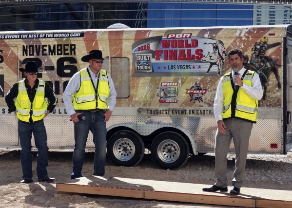 Well, that didn’t take long. A day after the Professional Bull Riders circuit held its final event at Thomas & Mack Center, a bucket of PBR World Finals dirt from that arena on the UNLV campus was ceremoniously dumped Monday afternoon in front of the new Las Vegas arena being built on the Strip.