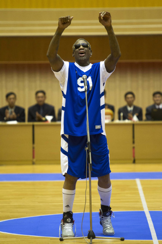 PYONGYANG, North Korea — Dennis Rodman sang “Happy Birthday” to North Korean leader Kim Jong Un before leading a squad of former NBA stars in a friendly game Wednesday as part of his “basketball diplomacy” that has been criticized in the United States as naive and laughable.