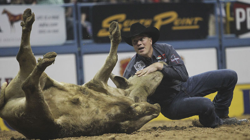 Round seven of the Wrangler National Finals Rodeo at the Thomas & Mack Center in Las Vegas on Dec. 12, 2012.