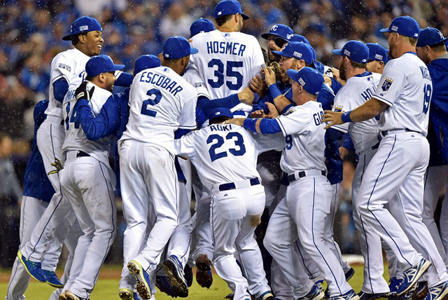 First baseman Eric Hosmer made good on a Twitter invitation to Kansas City Royals fans to meet players at McFadden’s bar following a three-game sweep of the Los Angeles Angels in the American League Division Series on Sunday.
