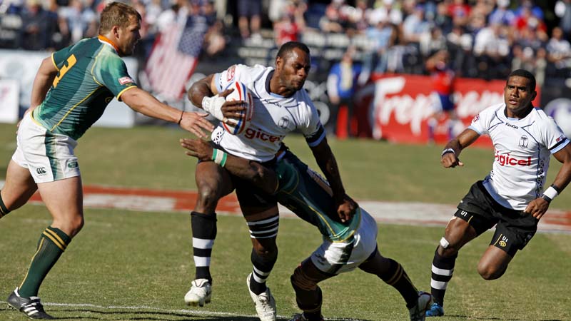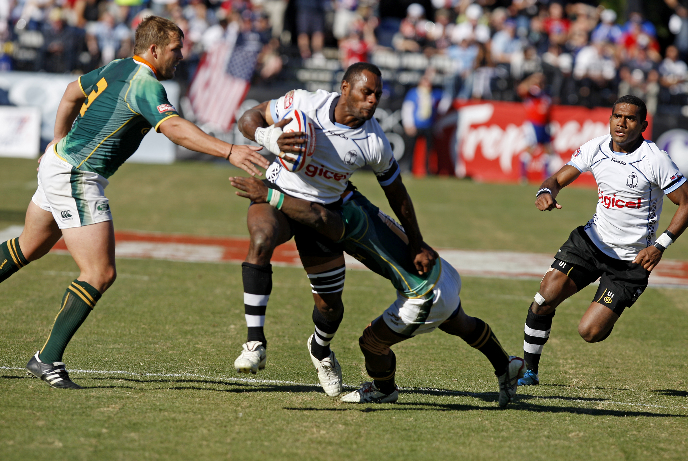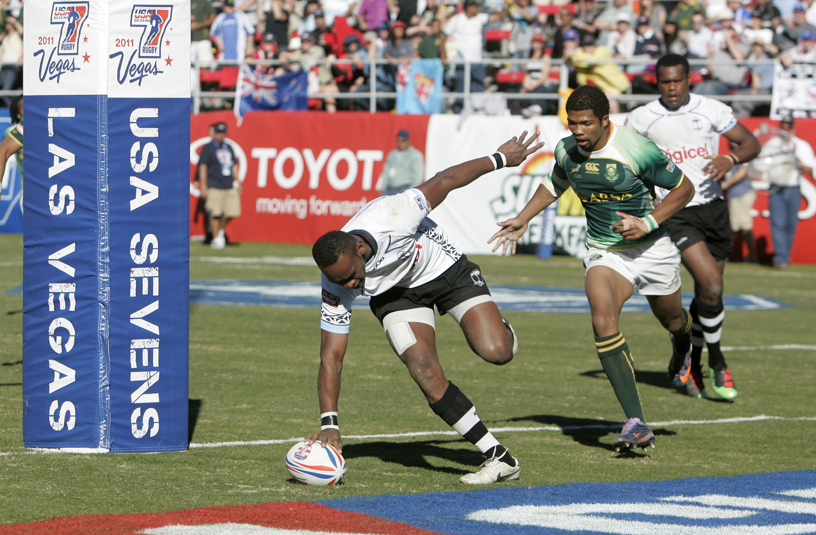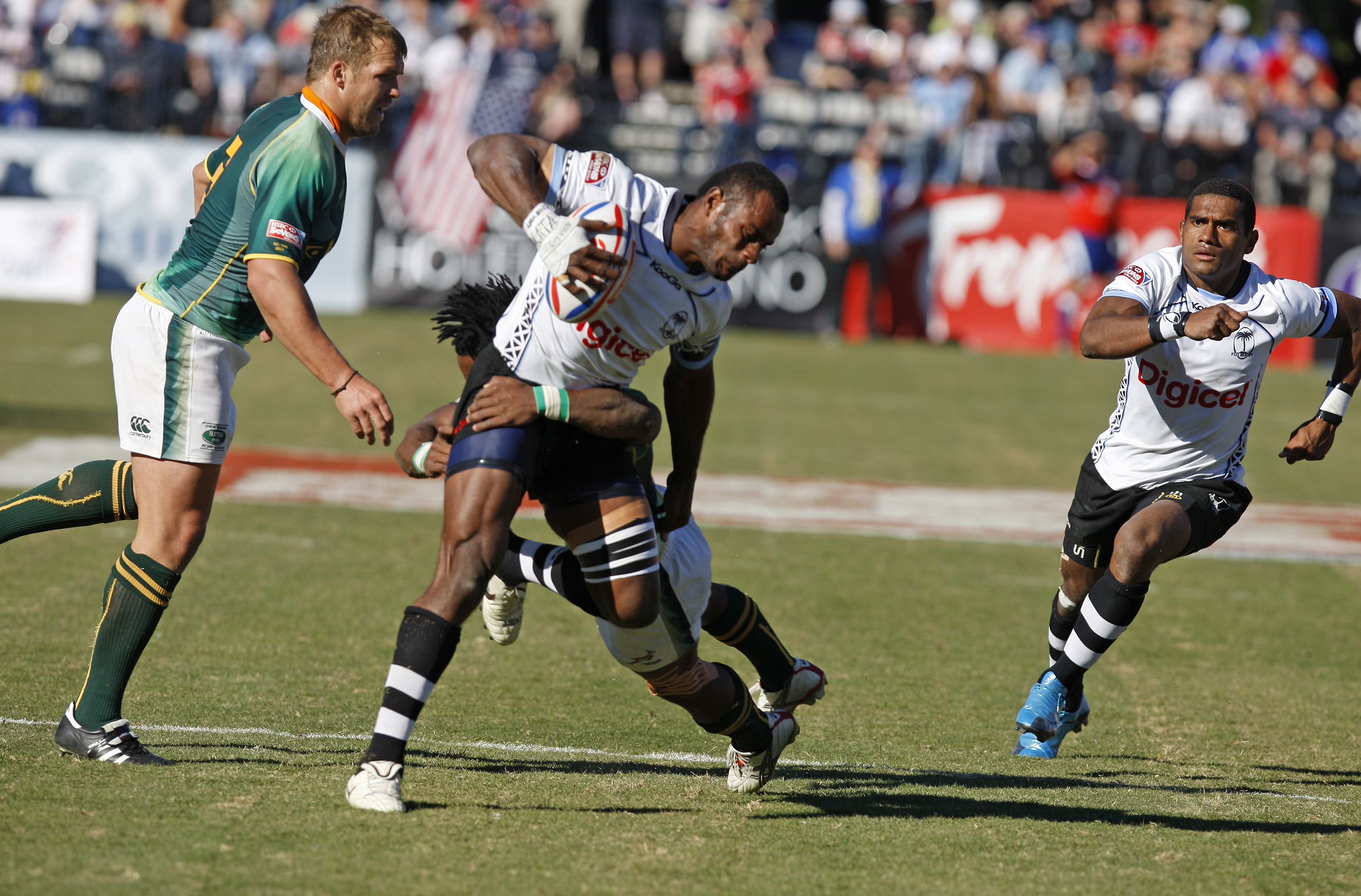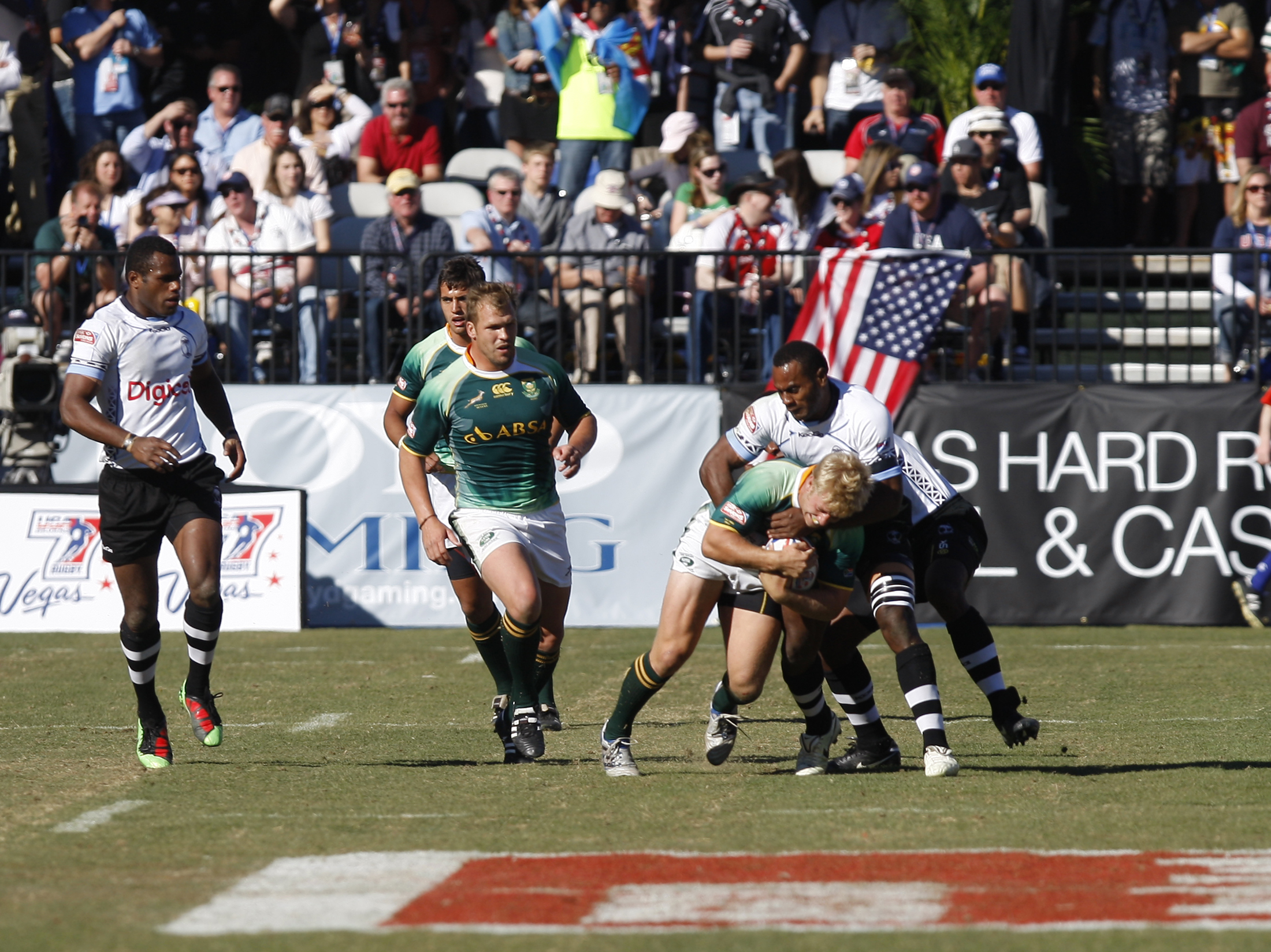 South Africa's Springboks led throughout the championship game to defeat Fiji 24-14 and claim the USA Sevens title before an announced crowd of 25,032 at Sam Boyd Stadium on Sunday, Feb. 13, 2011.