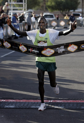 Tegla Loroupe, the former women’s world-record holder and a two-time New York City Marathon winner, took third in the women’s race, with almost no training. Loroupe ran New York last month — taking eighth — and Las Vegas on Sunday in more of an ambassador role for her peace foundation. So finishing third, in 2:41:37, was fine with her.