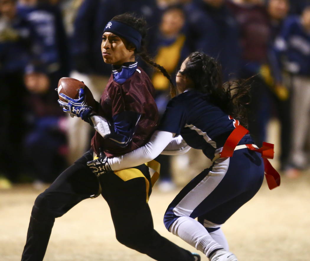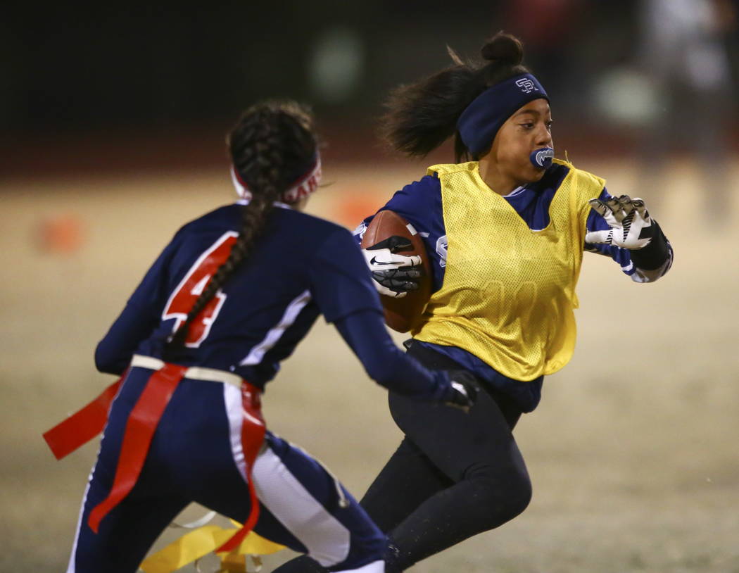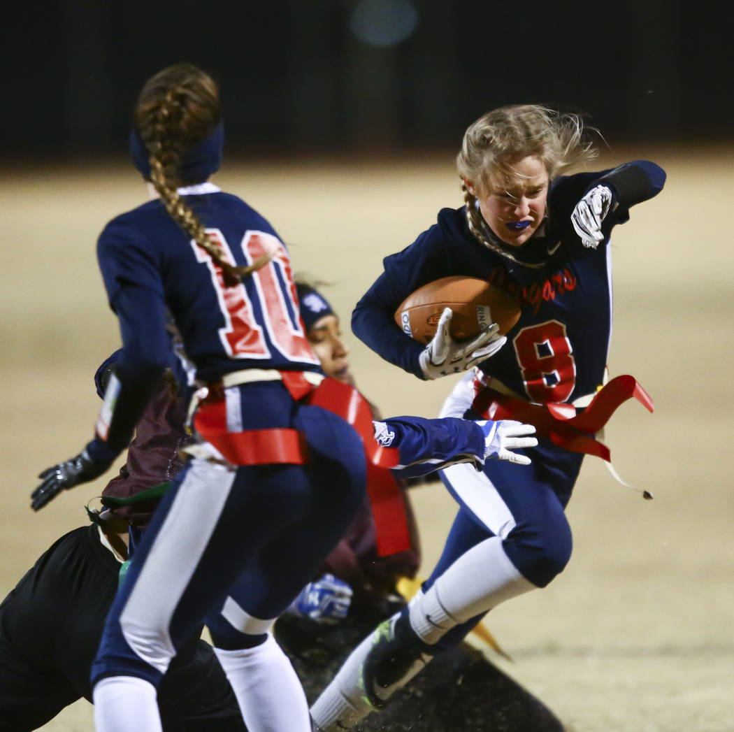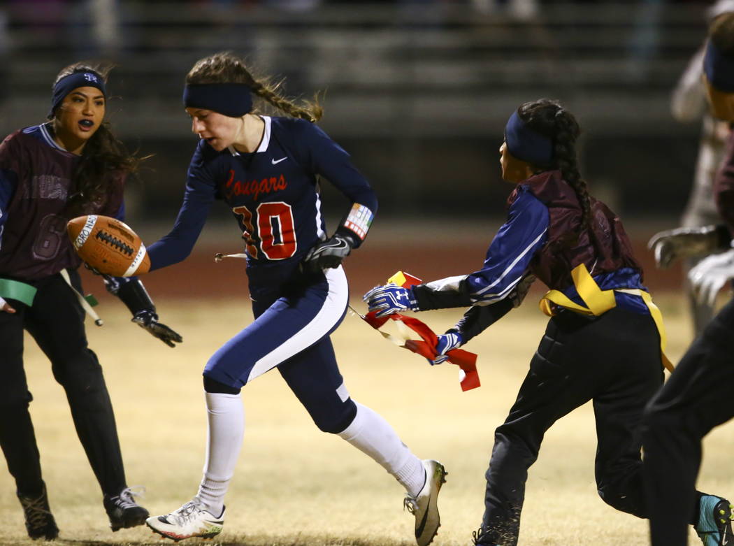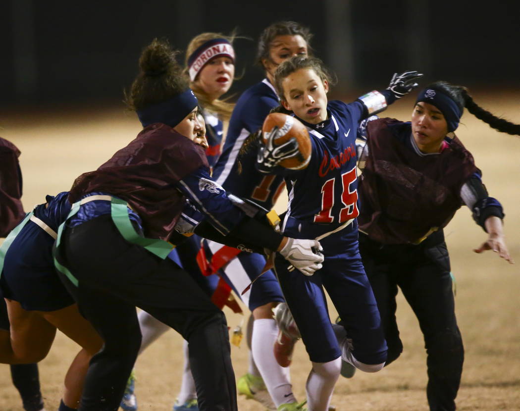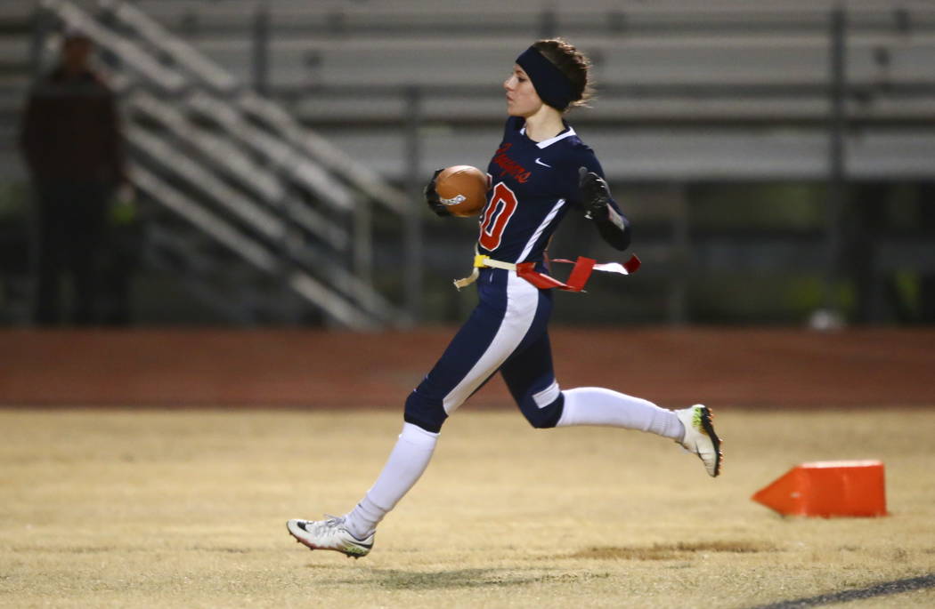 Wind gusts up to 20 mph in the valley on Thursday night turned Coronado junior quarterback Caitlin Shannon into a runner during the Class 4A state flag football championship game.
