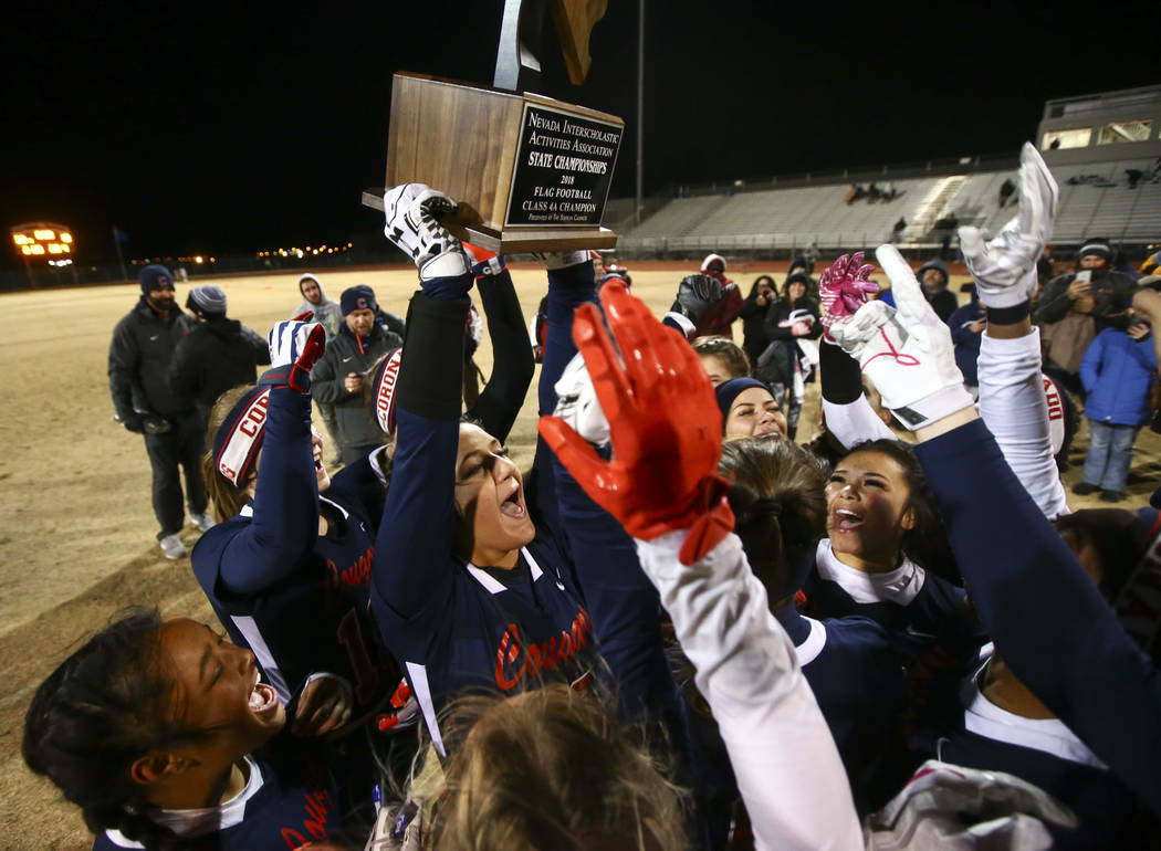 .@CoronadoFlagFB caps an unbeaten season with a 33-18 victory over @ShadowRidgeFF in the Class 4A state flag football championship. Cougars QB Caitlin Shannon threw four a touchdown and ran for four. pic.twitter.com/R1f2WQ0wXC