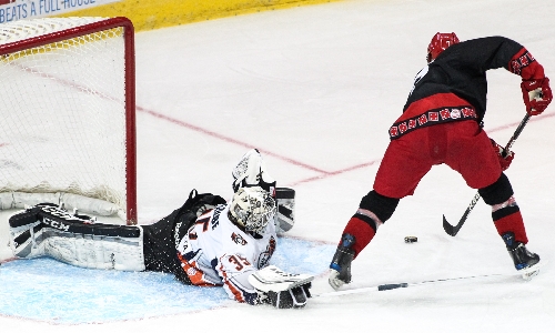 Las Vegas (14-13-4), which has won six of its past eight games, took a 1-0 lead in the first period on a goal by Andrew Sarauer – who set up the game winner – before surrendering two goals to Ontario (21-8-2) in the second period.