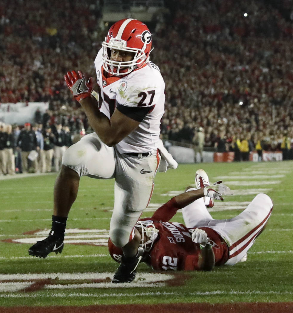 Georgia’s Nick Chubb and Sony Michel combined for 326 yards and five touchdowns on 25 carries against Oklahoma. It takes four games for Alabama to give up 326 yards rushing.