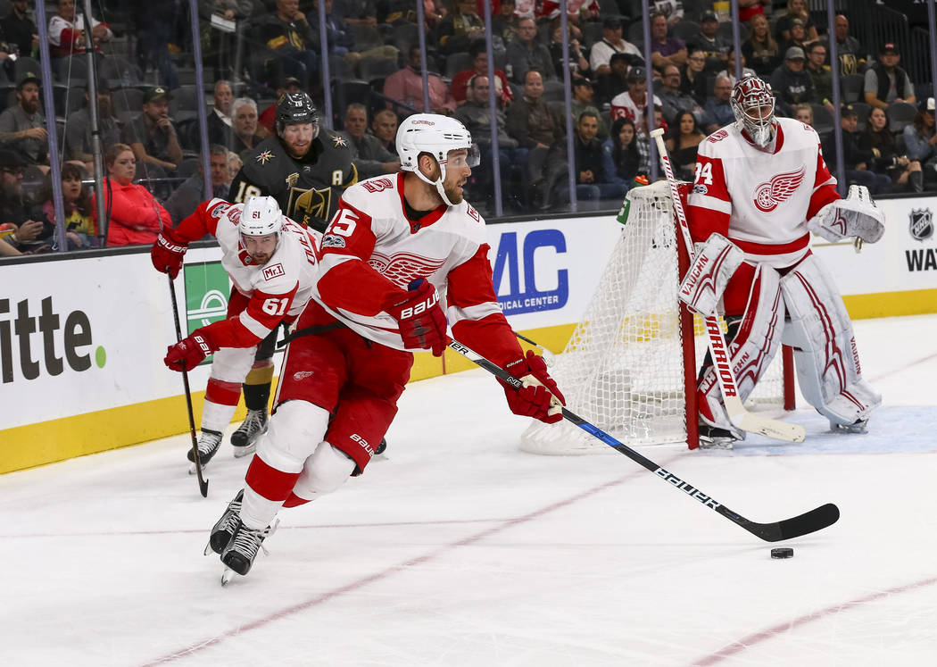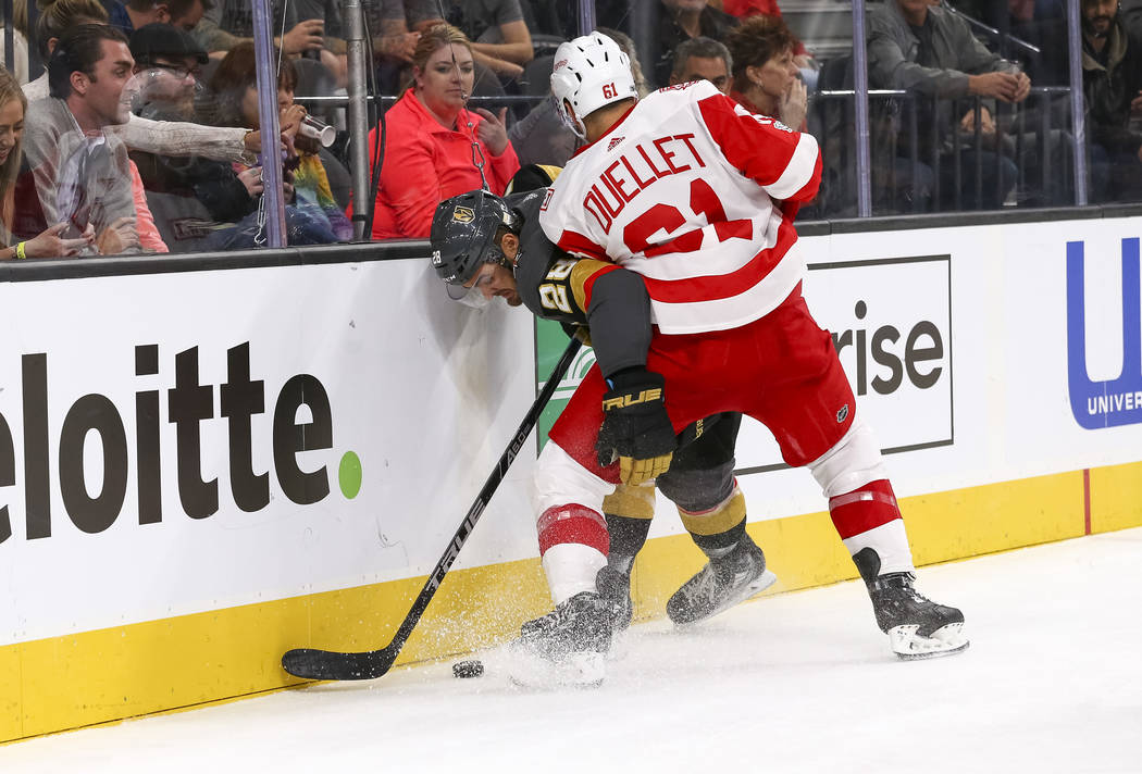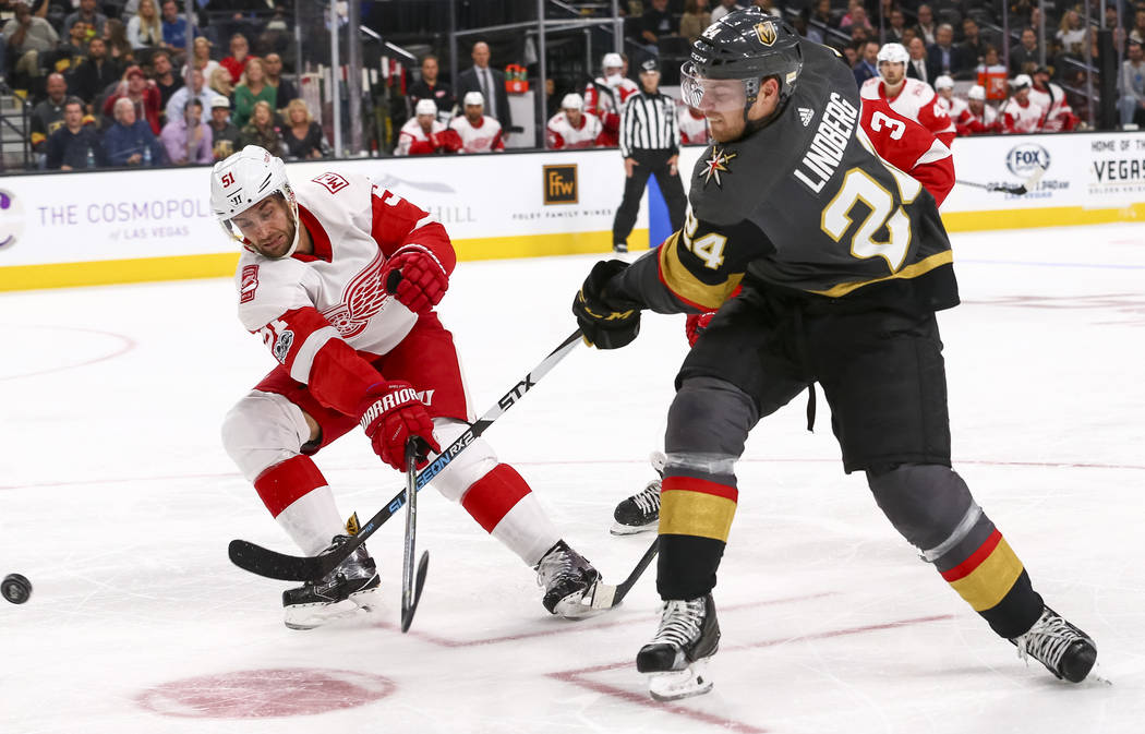 The first expansion team in NHL history to win its first three games couldn’t make it four Friday night, when the Detroit Red Wings beat the Knights 6-3 before 17,645 at T-Mobile Arena.