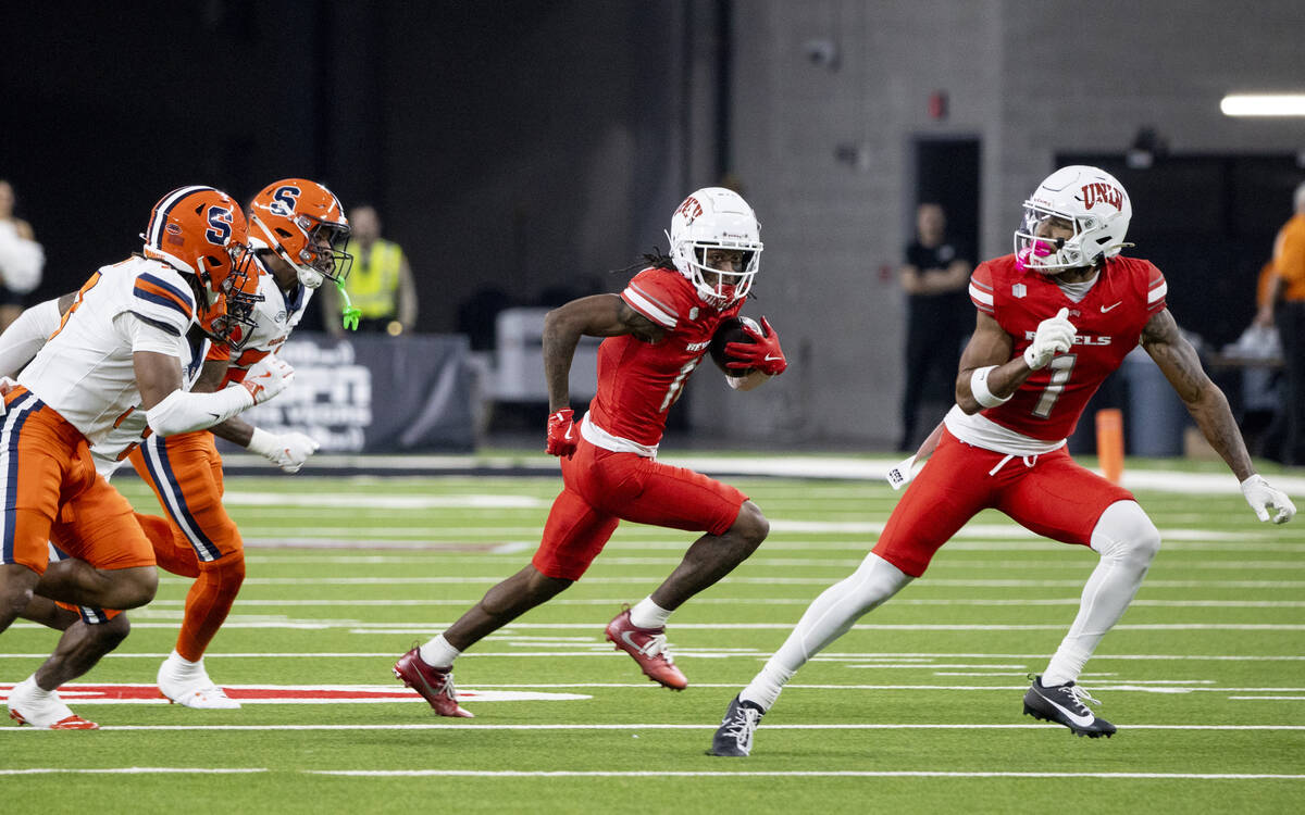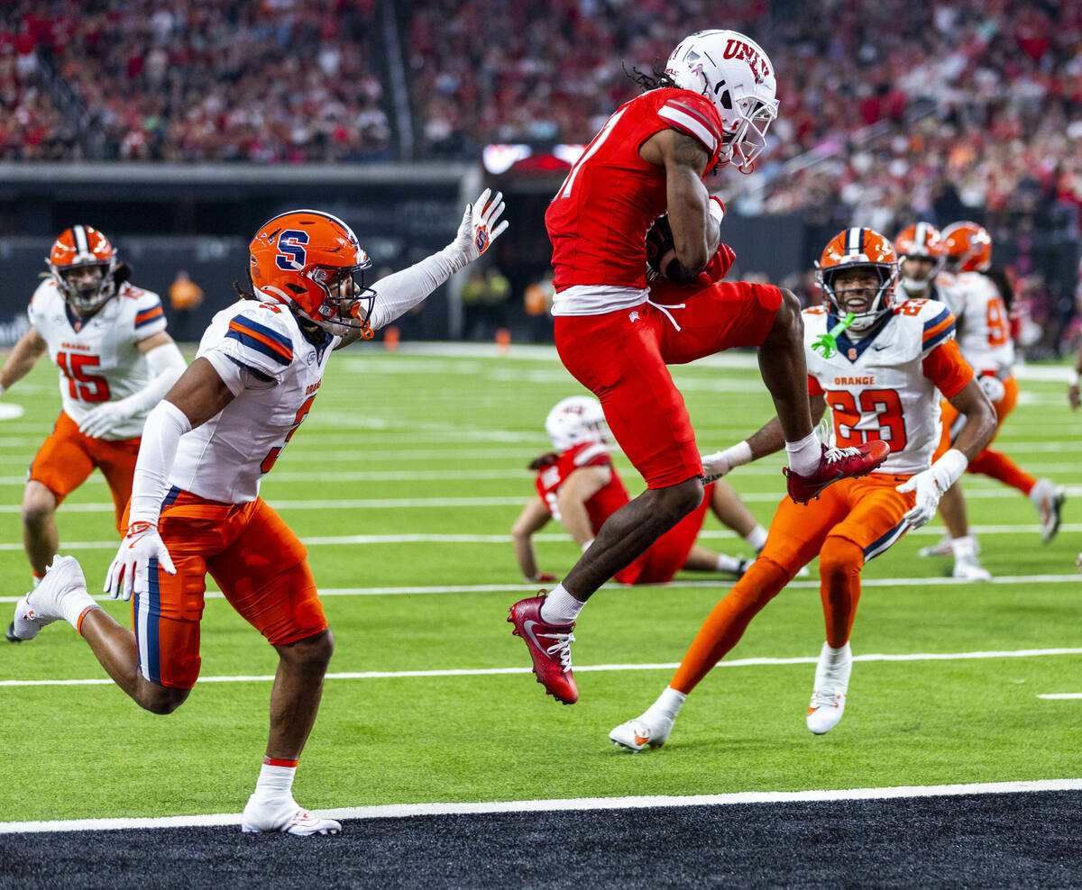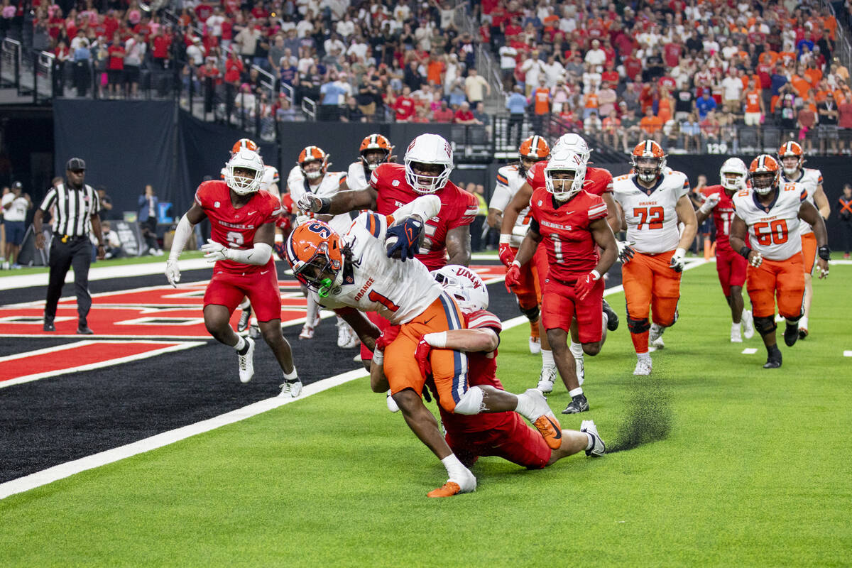 But winning wasn’t to be on this night for UNLV (4-1), whose inability to get off the field on third down and self-inflicted penalty wounds allowed Syracuse (4-1) a long celebratory flight back home.