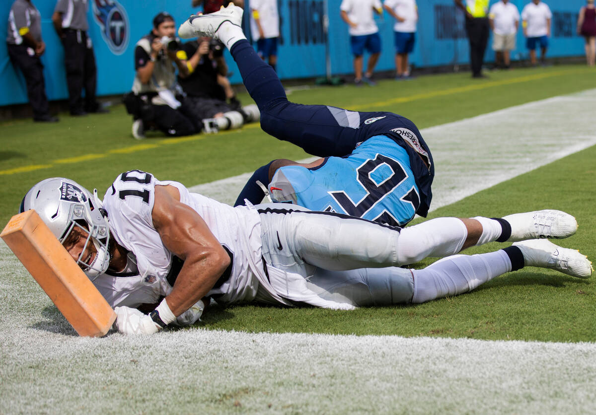 In a final scoring drive to pull the Raiders within 24-22, Hollins had a few such catches on fourth down. The first went for 48 yards down the right side. The other was a fade route for a touchdown. Both over the shoulder grabs. Both terrific plays.