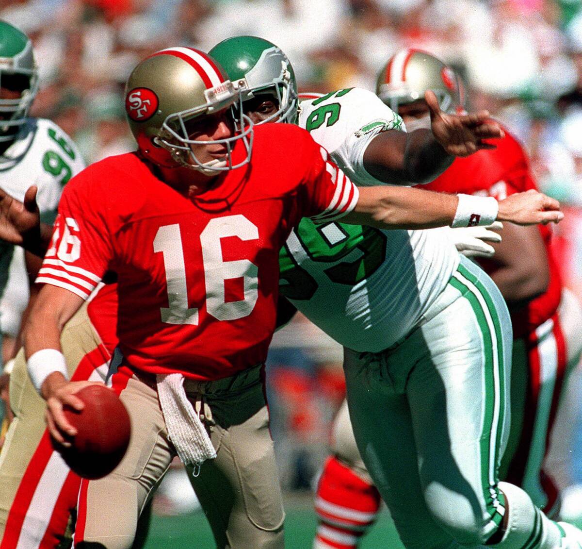 Joe Montana is Roosevelt: The decision between Nos. 3 and 4 was difficult, but it’s Super Bowl week and Montana was perfect in the most important games of his career. He was a three-time Super Bowl MVP. He also made eight Pro Bowls and was selected all-Pro five times. He led his teams to 32 fourth-quarter come-from-behind victories. He was a two-time league MVP. “Joe Cool” — as he was known — was the perfect fit for coach Bill Walsh’s West Coast offense, one that saw few rivals throughout the 1980s. He was considered the best of all time until a certain fellow named Tom Brady came along.