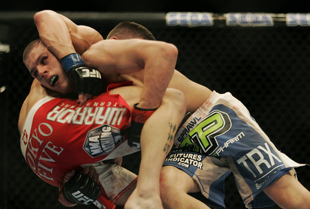 Things happened quicker for Dan Lauzon earlier in the evening, a loss at 3:05 of the first round when Cole Miller produced a Kimura from an inverse triangle, which didn't look as dangerous as it sounds, although I am told it can lull you to sleep, so I might try it on the 11-year-old when he's having one of those restless evenings at home.