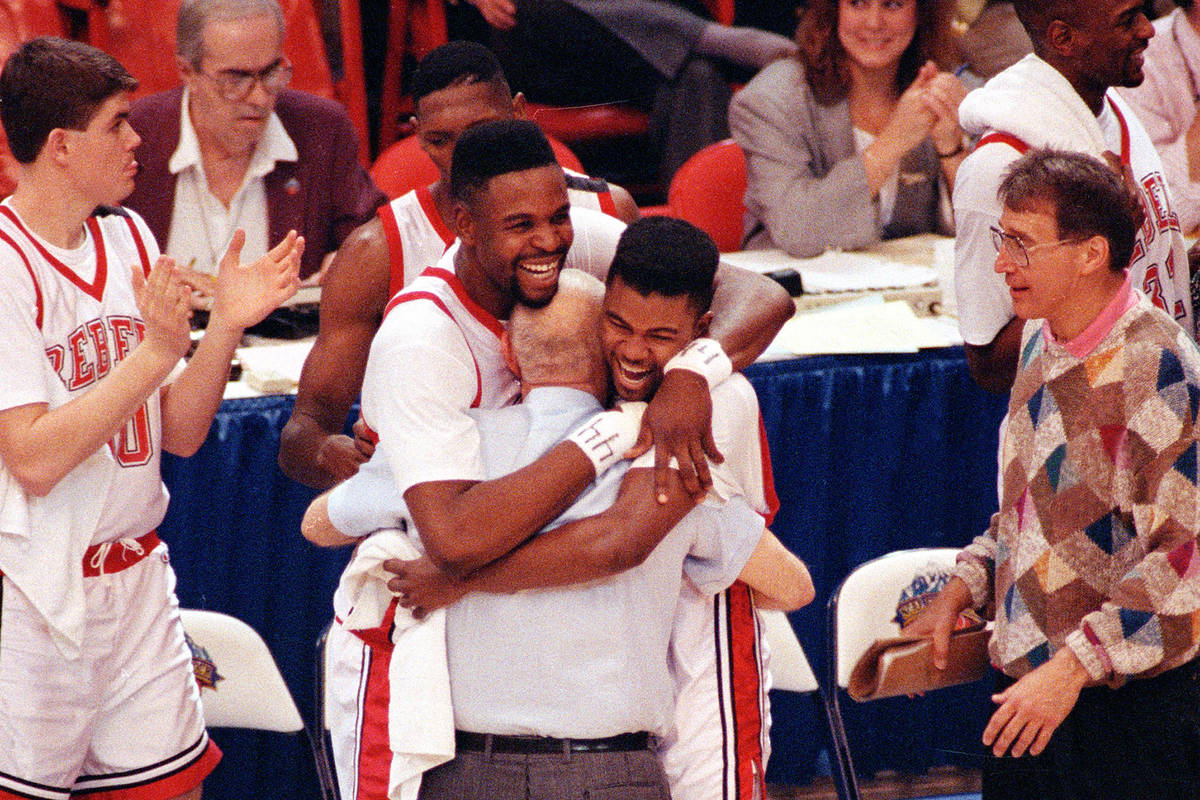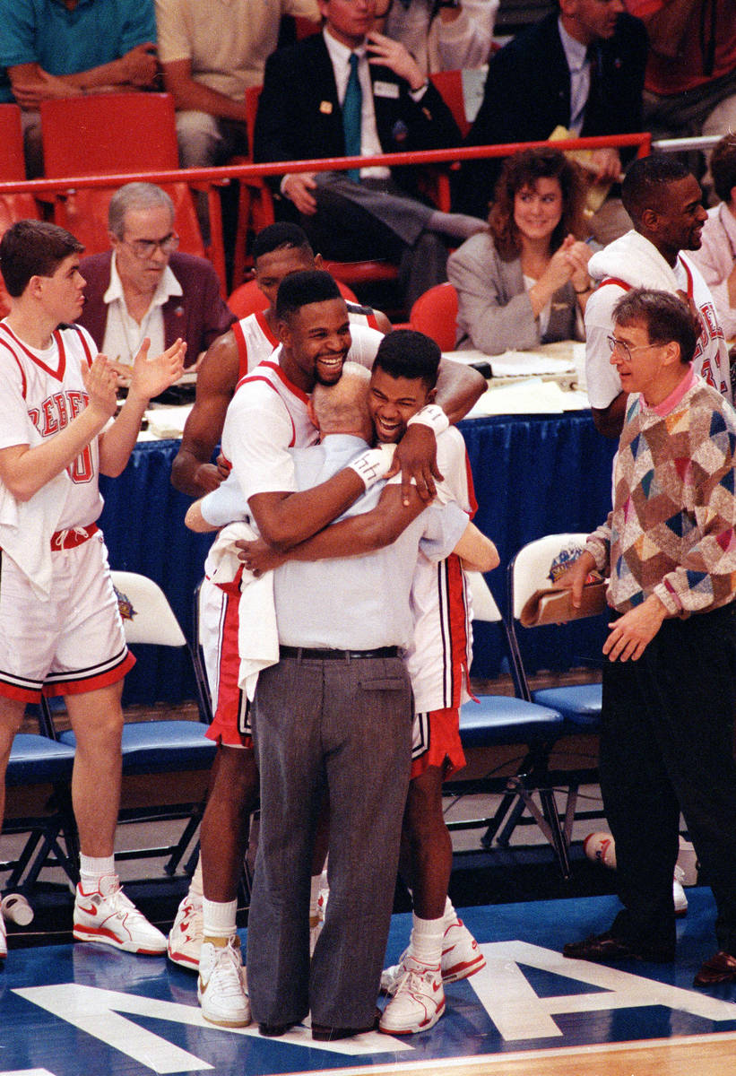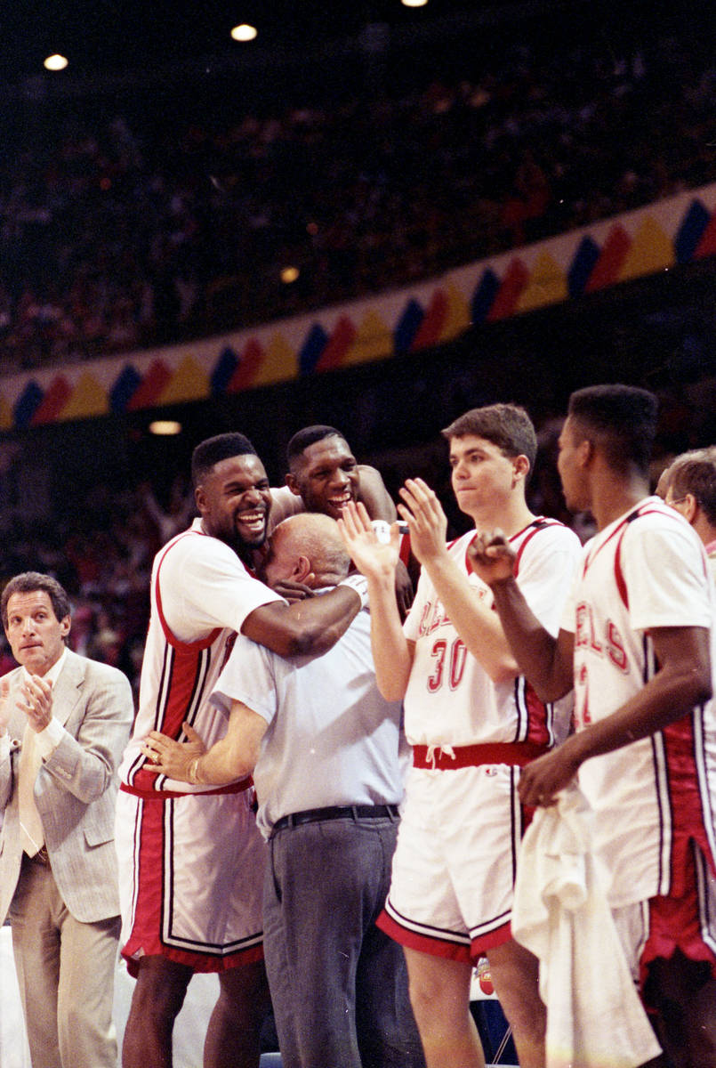 There was no denying UNLV’s immense talent. The Rebels finished 35-5, won the Big West Conference and held opponents to just 42 percent shooting. Five players averaged between 11.2 and 20.6 points. And with five minutes remaining in that championship game, those talented starters began to hug Tarkanian on the bench.