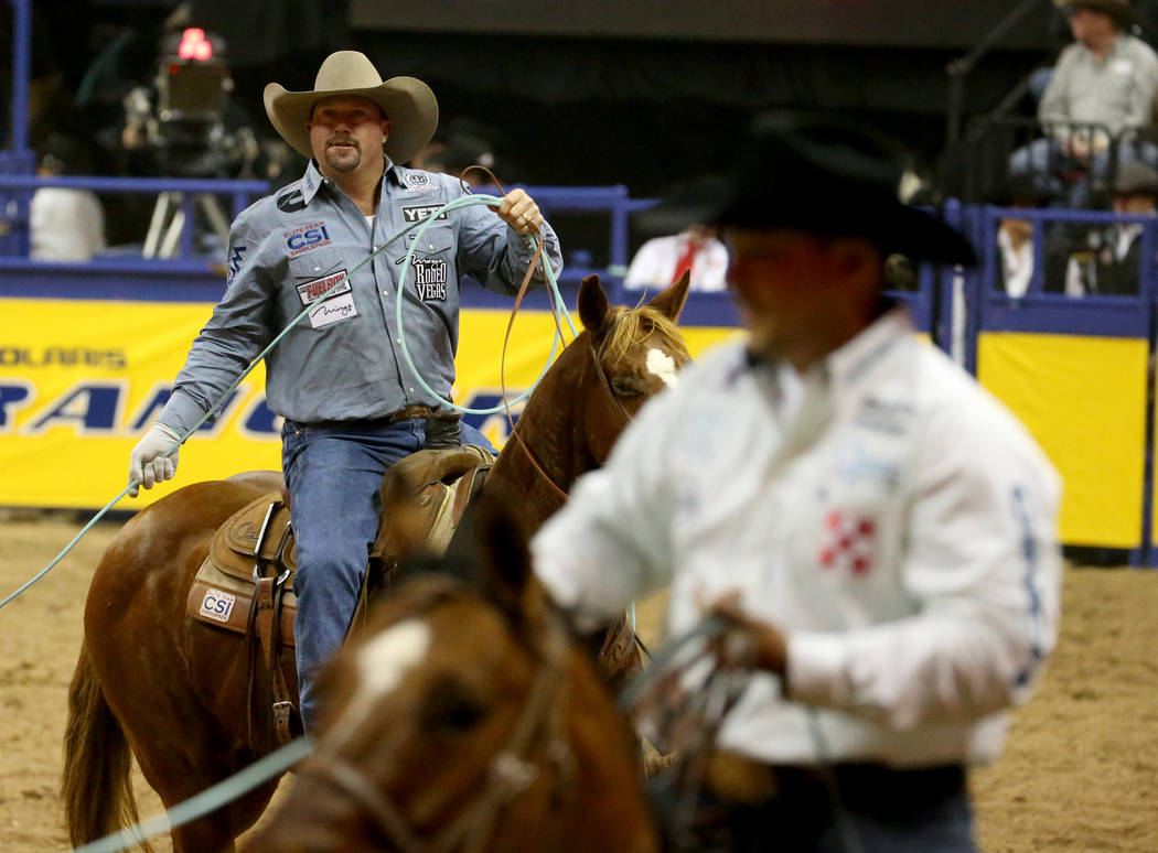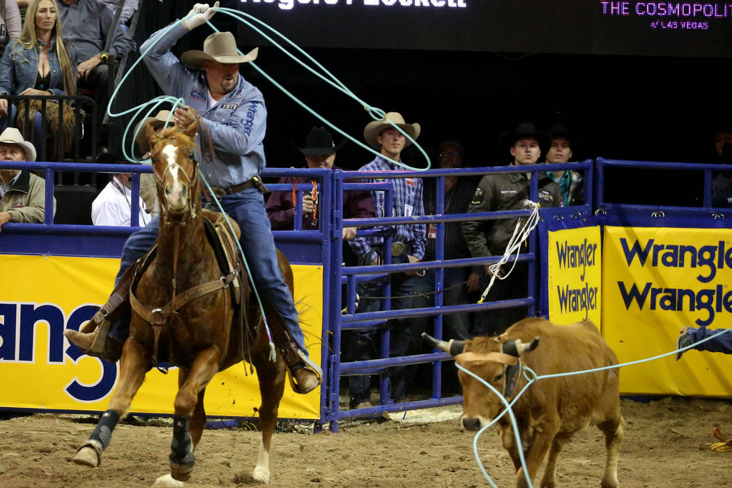 Lockett and Rogers have never roped together before now, practicing as a tandem for two days before heading to Las Vegas. It didn’t seem to bother them Thursday, as they finished third in 4.3 seconds.