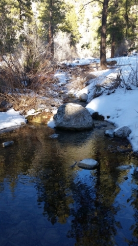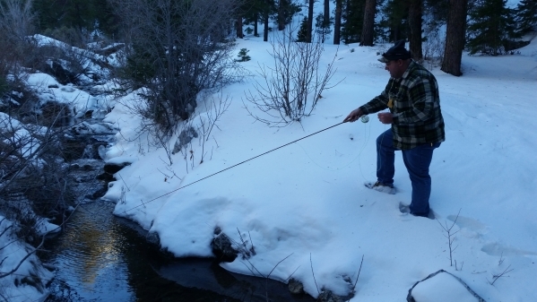Given the amount of snow that has fallen in the Spring Mountains recently, ours was an adventure of hope and desperation. Hope we would find open water and a desperate need to cast a fly once we found it. I had my doubts, but thoughts of that backpack pushed me onward.