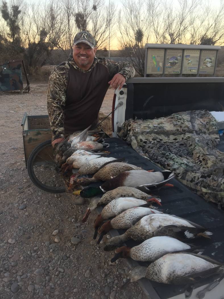 “I hunted last Friday, and it looks like some birds have moved into Southern Nevada,” wrote Welter in an email. “There was a pretty constant flow of birds in the air. Between my buddy Robert and I, we managed a two-man limit by 2 p.m. There are a lot of green-winged teal and gadwall in the area right now. We saw plenty of Canada geese as well, but they didn’t want anything to do with us. Regardless, it was a great day to be in the duck blind.”