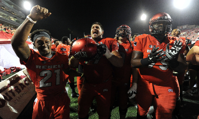UNLV played its annual game against a Football Championship Subdivision opponent at Sam Boyd Stadium on Saturday night. The official stat sheet said only 16,717 were on hand to watch the Rebels tally a school-record 80 points — Idaho State had 8 — and do chest bumps on the sideline.