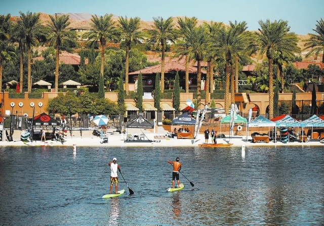 Buff, bronzed paddleboarders stand up to gentle tides at Lake Las Vegas event