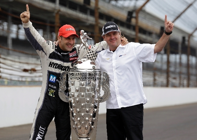Tony Kanaan took the “maxi-Borg” — the real one, not a replica — on the Letterman show after he won the 500. He and Dave rubbed their hands all over it, like it was a genie’s lamp. They left fingerprints on Parnelli Jones’ bas-relief likeness, and on Mario’s and A.J.’s, and on Louie Meyer’s, who lived in Searchlight until he died. And on the sterling silver faces of various Unsers — Big Al, Little Al, Uncle Bobby.