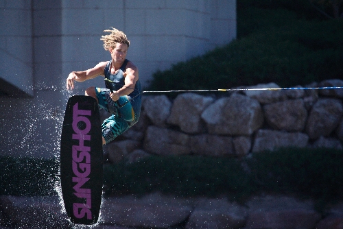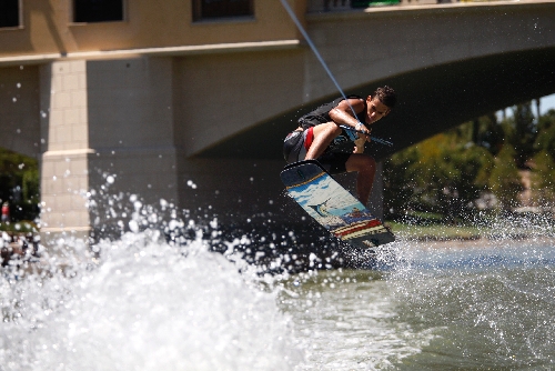 The mercury was pushing 100 degrees Sunday afternoon with nary a cloud in the sky. And if you can't be in the bleachers watching a ballgame and quaffing a beer on a day like that, then watching college kids do somersaults on man-made waves on a man-made lake isn't a bad backup plan.