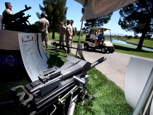 Eyes were drawn to the heavy machine gun, which can fire more than 500 rounds per minute and has a range of 7,400 meters or 8,092 yards -- roughly one trip around the TPC and a stroll to the nearest Starbucks on Town Center Drive. And here you thought John Daly and Big Bertha were a formidable combination.