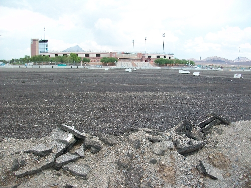 Asphalt, I’m told, goes for about $2.50 per square foot. There is a lot of square footage in those parking lots — about 64 acres, says Daren Libonati, who used to run Sam Boyd Stadium for UNLV. At 43,560 square feet per acre, that’s 2,787,840 square feet of dusty (or muddy, when it rains) parking lot.
