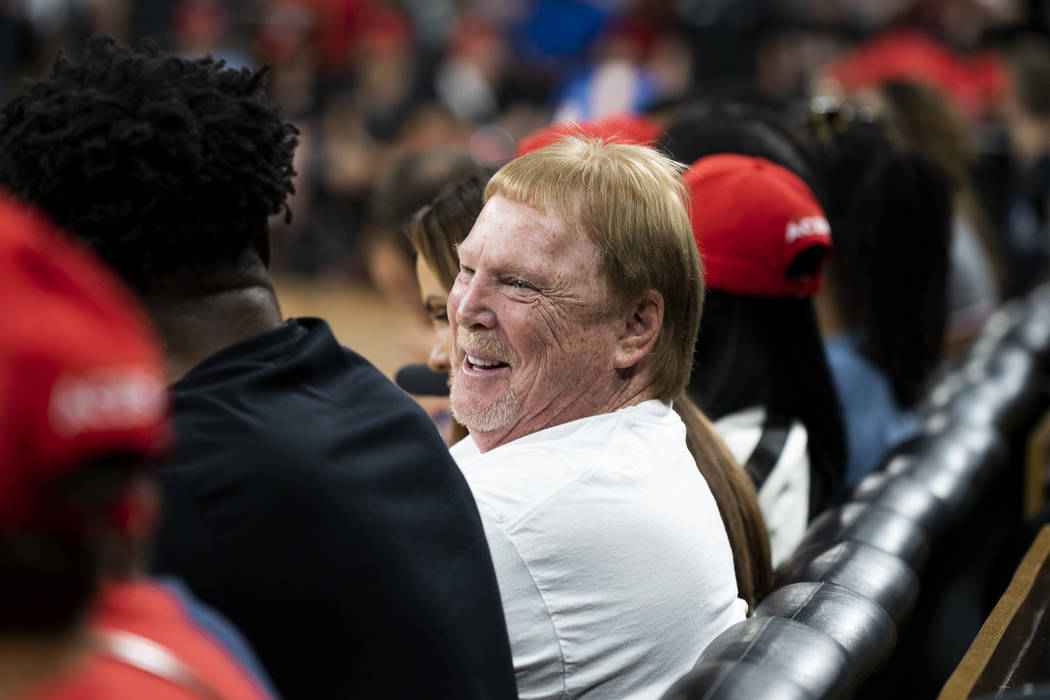 During the game, Mark Davis had been sitting in the Aces’ version of UNLV’s Gucci Row.