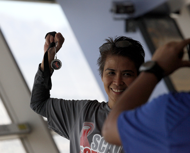 Mike Schramm of Las Vegas climbed the 1,455 steps in 9:28, 15th fastest overall. Schramm, a finance director at United Healthcare Nevada, is consider the best tower runner in Las Vegas. He said he has run 32 marathons; he also said it was silly to believe that a marathon prepares one for running up 1,455 steps.