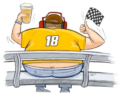 Powell would never say this, but I will: Walk the midway at LVMS on NASCAR weekend, or take a stroll around Neon Garage. Get a pair of giant Kyle Busch sunglasses and check out the junk in the trunks. I guarantee you will see many more Jimmy Spencer-sized posteriors than Joey Loganos. And then there are the men.
