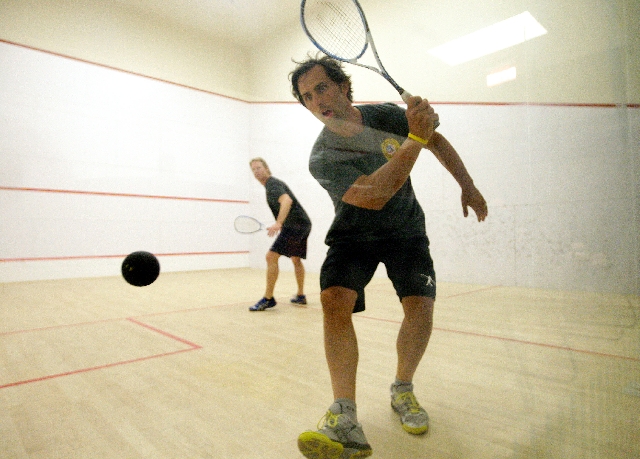 Englishman Richard Glanfield, the director of squash — “works for me,” he said — at Life Time Athletic Summerlin, said when the customs agent at Los Angeles International Airport asked why he was traveling to the U.S., and he replied “squash tournament,” the agent asked “What county fair?”