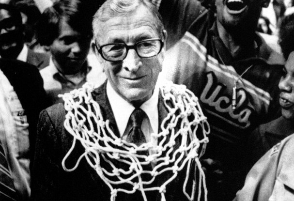 John Wooden, the Wizard of Westwood. Wearing the net.