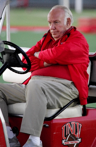 He should have gone into the College Football Hall of Fame not on a pedestal but in a golf cart, because that's how he liked to scoot around the practice field at UNLV from 1999 to 2004 -- the "back" part of traveling to the mountain and back as a college football coach.