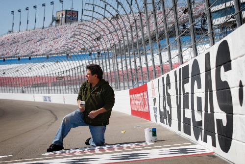 Clemens was applying a fresh coat of paint to the "L" on "LAS VEGAS," which is what it says on either side of the start-finish line at the 1.5-mile oval, just in case anybody at this weekend's NASCAR Sam's Town 300 and Kobalt Tools 400 forgets where he is.