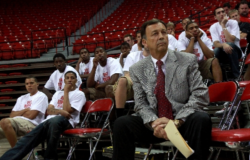 I dreamed I was in a Hollywood movie. Out of the middle came a man — not whispering in my ear, or doing something else in it and telling me it was raining, a la his predecessor, but speaking over a microphone at the Thomas & Mack Center. Relatively new athletic director Jim Livengood was telling the long ones, tall ones, short ones, brown ones, black ones, round ones, big ones and John Gianninoto what was expected of them as student-athletes.