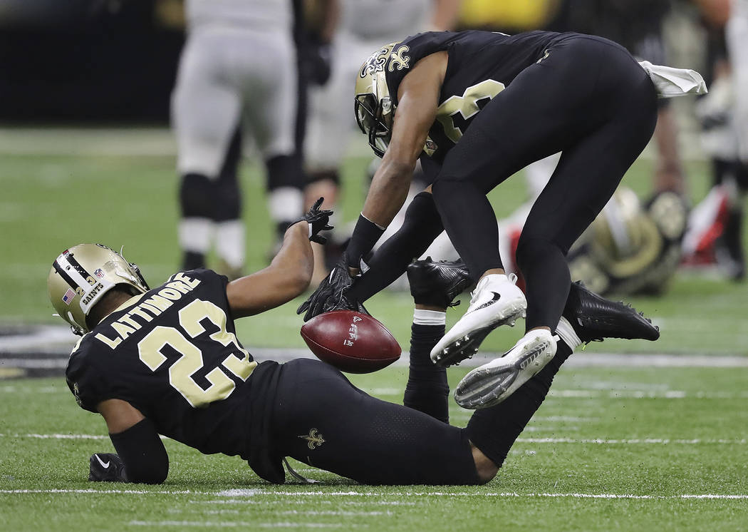 The Saints cornerback came up with an interception of Matt Ryan late in the first half of New Orleans’ 23-13 win over Atlanta on Sunday when a deflected pass came to rest on Lattimore’s backside as he lay facedown on the field.