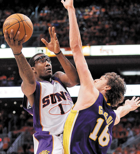 Robin Lopez, whose 7-foot presence gave the Suns some much-needed toughness inside, scored 20 on 8-of-10 shooting in 31 minutes, by far his most playing time since returning from a back injury at the start of the series. Phoenix made 37 of 42 free throws, 14 of 18 by Stoudemire. The Lakers were 16 of 20 at the line.