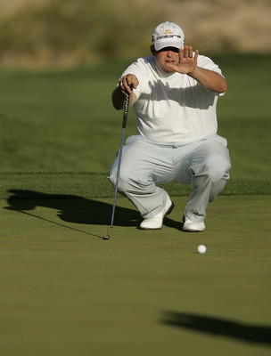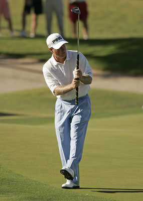 "I had to be talked into using it," he said of the belly putter, which has an extra long shaft and forces the golfer to stroke the ball upright rather than hunched over as with a conventional putter. "I used it last week and decided to stick with it."