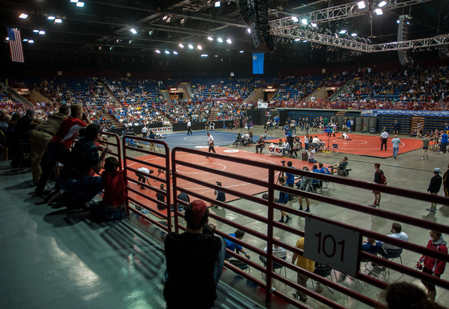 In Division I-A, Owen Lawrie of Faith Lutheran pinned Churchill County’s Anthony Sabatino in 43 seconds at 126, and Clark’s Michael Hervis topped Tytin Johnson of Lowry 4-3 at 195. Virgin Valley had two individual champions in Jacob Baird (106) and Juan Dominguez (120).